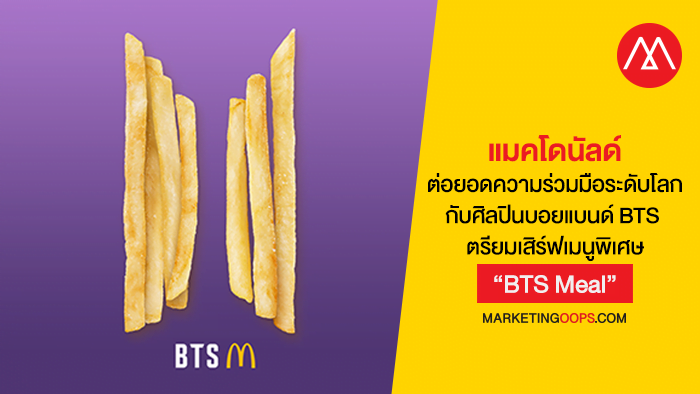 บทความ แมคโดนัลด์ ต่อยอดความร่วมมือระดับโลกกับศิลปินบอยแบนด์ BTS เตรียมเสิร์ฟเมนูพิเศษ “BTS Meal” ที่เหล่าอาร์มี่ชาวไทยตั้งตารอคอย ได้ปรากฏครั้งแรกที่ Marketing Oops!.