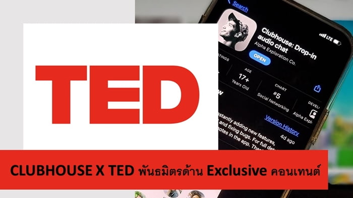 บทความ Clubhouse จับมือ TED ลุยสู้เอ็กซ์คลูซีฟคอนเทนต์ หลังแพล็ตฟอร์มเจ้าตลาดทำเลียนแบบ ได้ปรากฏครั้งแรกที่ Marketing Oops!.
