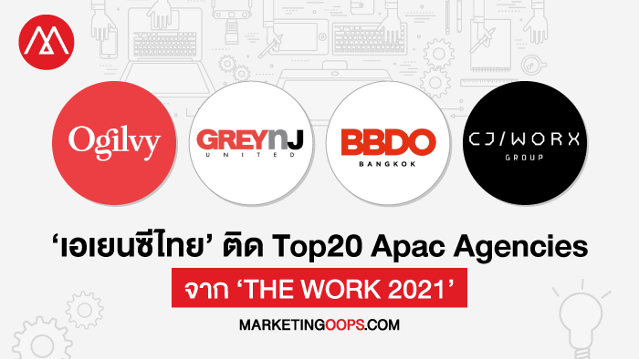 บทความ เผยรายชื่อ ‘เอเยนซีไทย’ ติด Top 20 Apac Agencies และ Top Agencies in Thailand จากเวที ‘THE WORK 2021’ ได้ปรากฏครั้งแรกที่ Marketing Oops!.